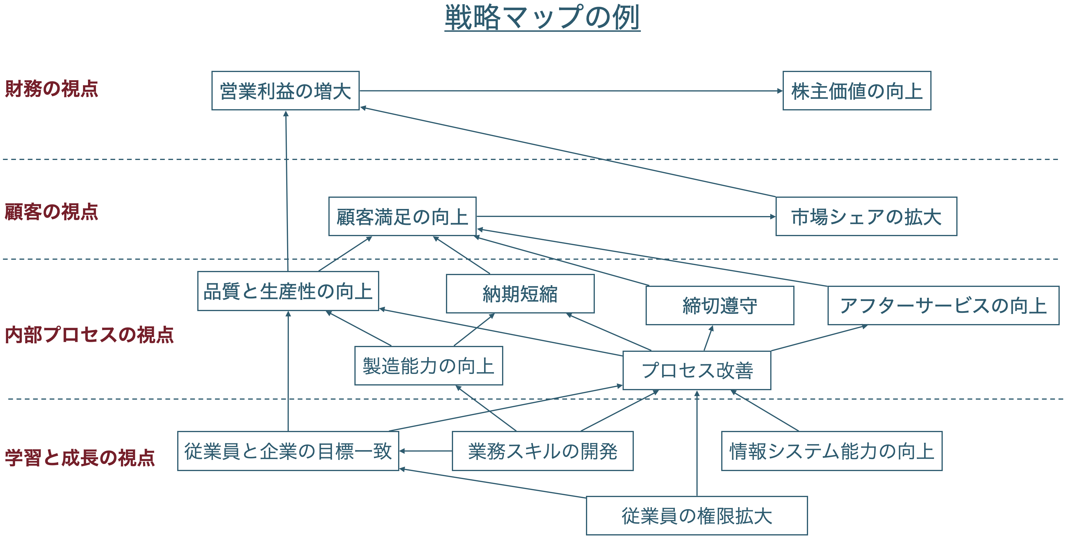 - 戦略マップと併用することで,大事なもの同士の関係が明示される